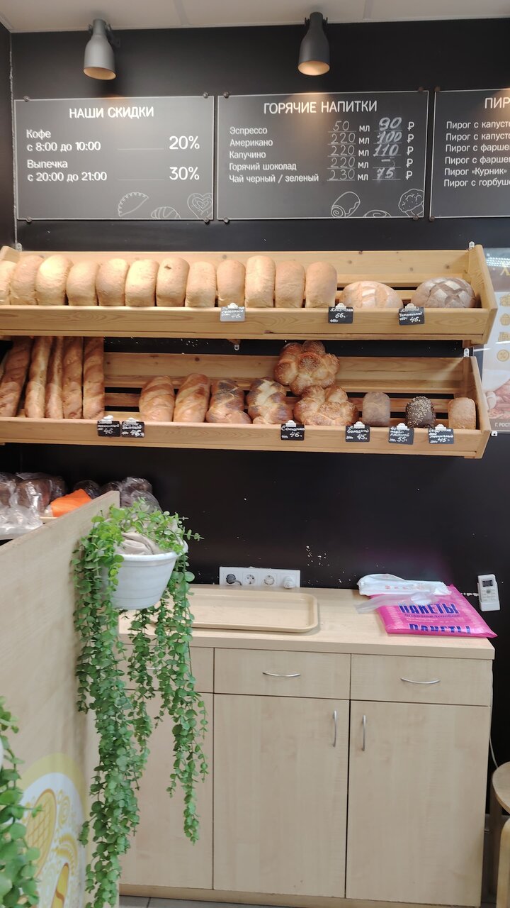 Отличное вкусное место. Оживленный транспортный путь, удобно расположена пекарня на перекрестке, где Магнит. На работу еду- утром отличный кофе со скидкой, на обед часто беру сразу что-нибудь из вкусных обедов (тефтельки, голубцы, котлетки с гарнирами) и салатов (с капустой, цезарь рекомендую прям, еще какие-то), иногда заезжаю - сладкого семье беру или в гости, его много вкусного и свежего на любой вкус: печенье, эклерчики, пироженки. Отмечу хлеб кукурузный и обычный кирпич как в детстве. Недорого. Приятные продавцы, чисто.